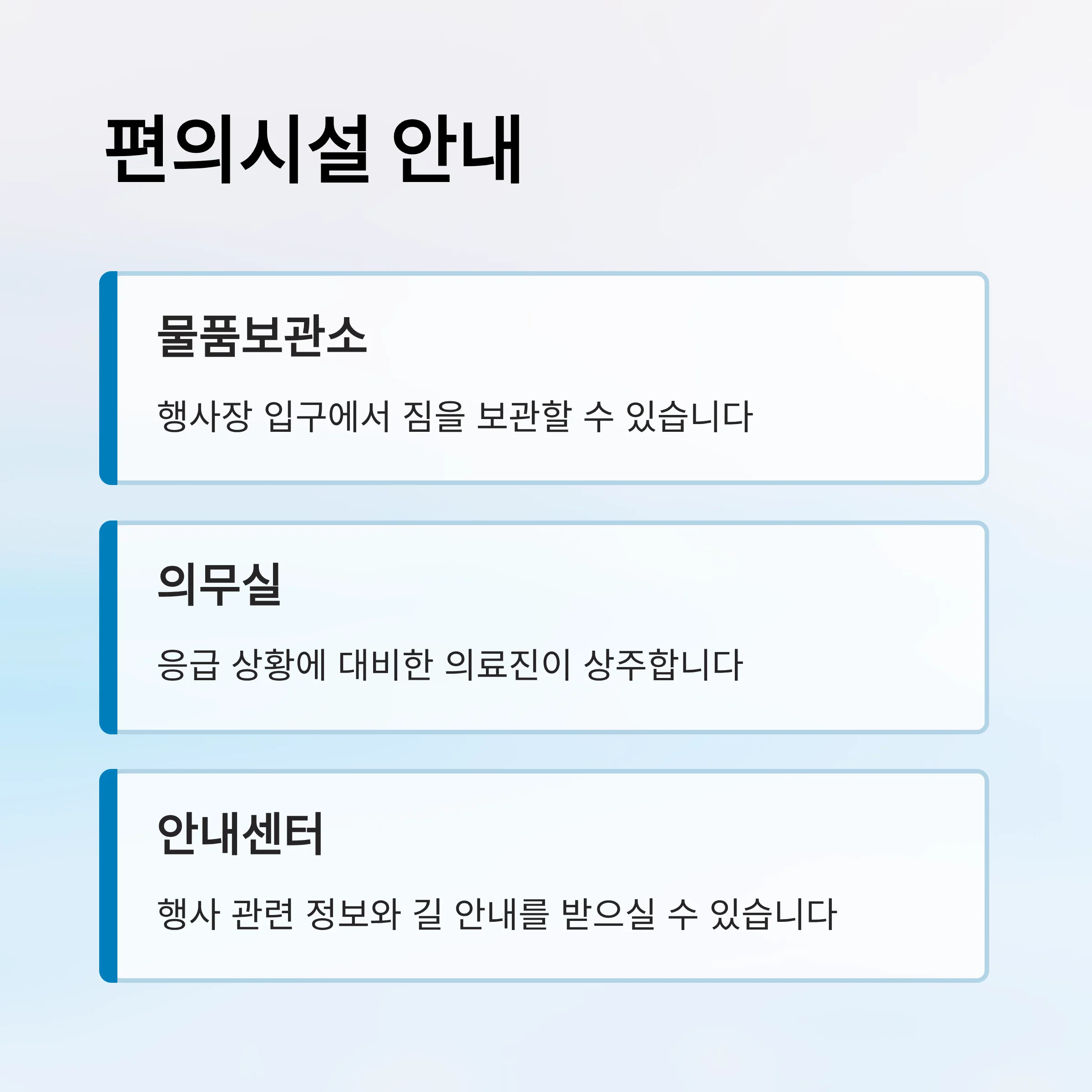 - 행사장: 물품보관소·의무실·안내센터 운영