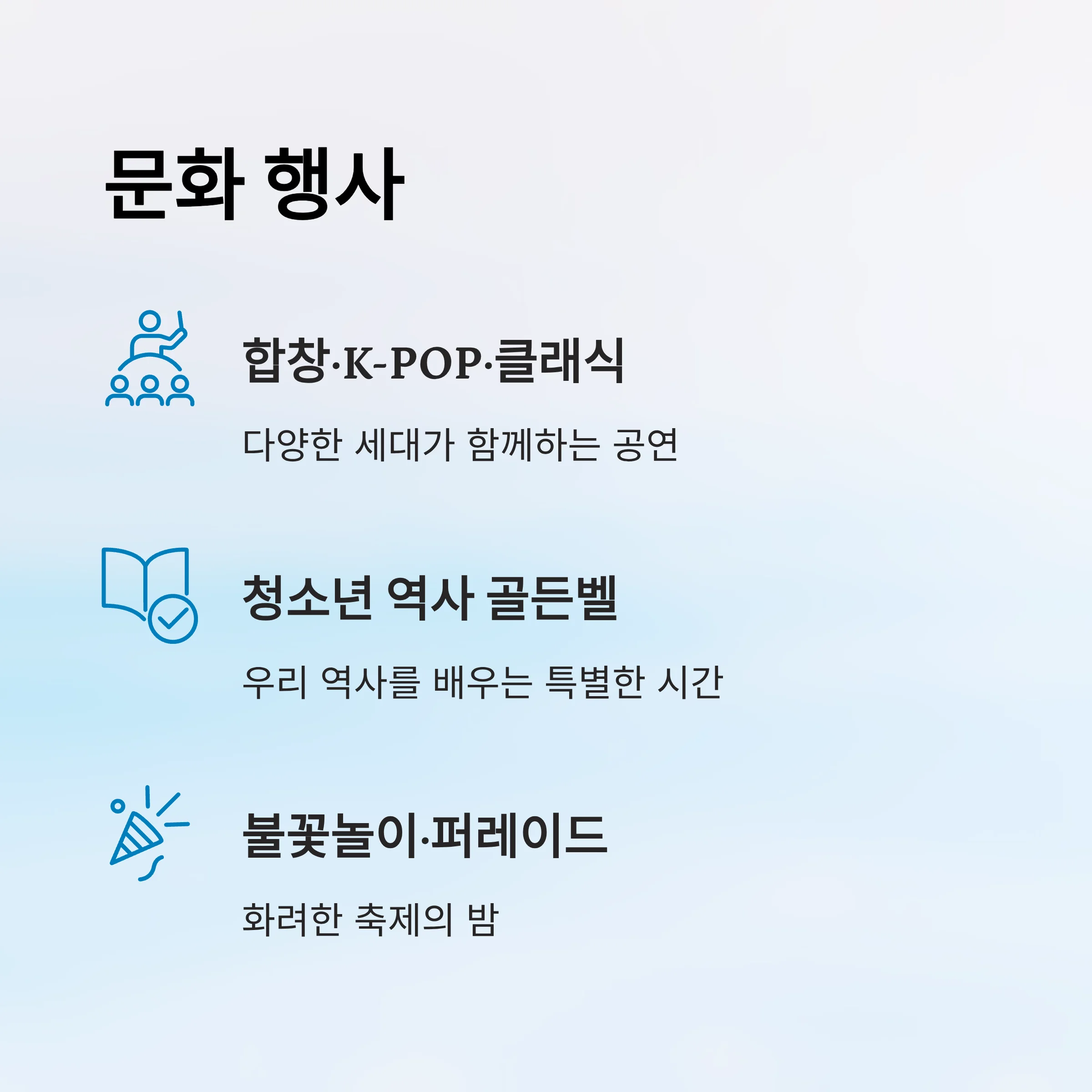 - 합창·K-POP·클래식 공연