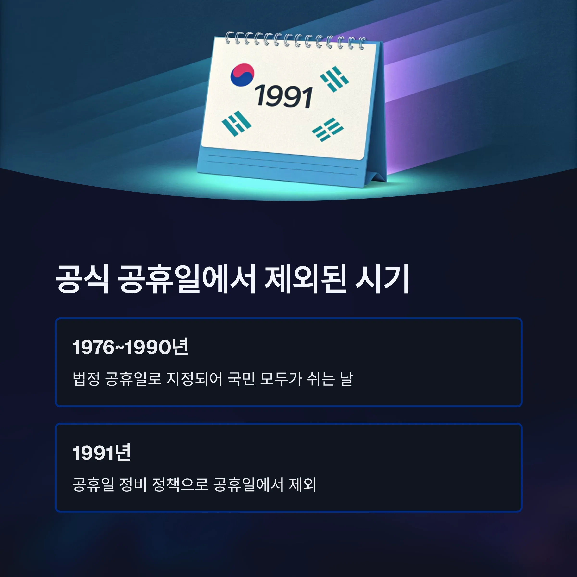 당시 정부는 과도한 공휴일 수와 이에 따른 경제적 부담, 교육 일정 안정화 등을 고려해 공휴일을 대대적으로 정비했습니다.