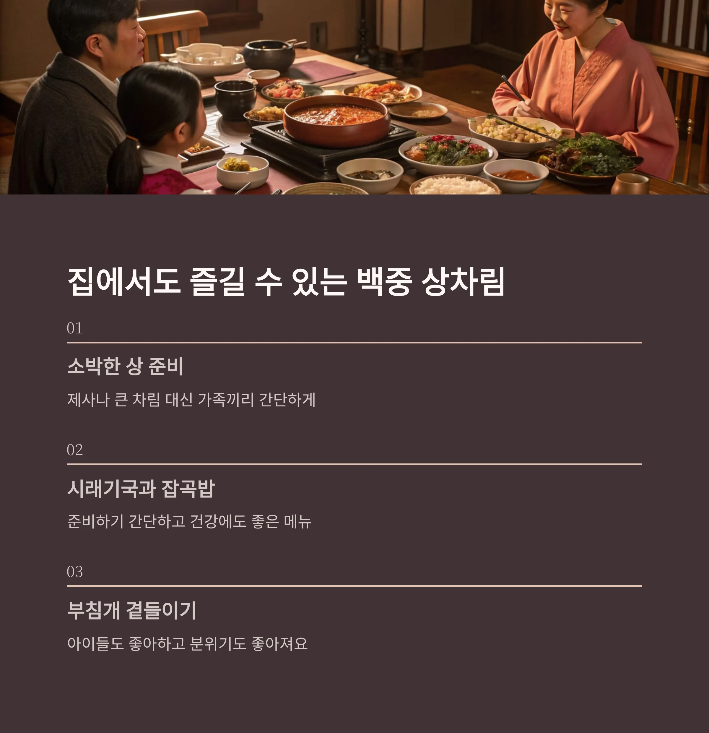현대에는 제사나 큰 차림을 준비하기 어렵지만, 가족끼리 소박한 상을 차려보는 것도 백중의 의미를 살릴 수 있는 방법입니다.