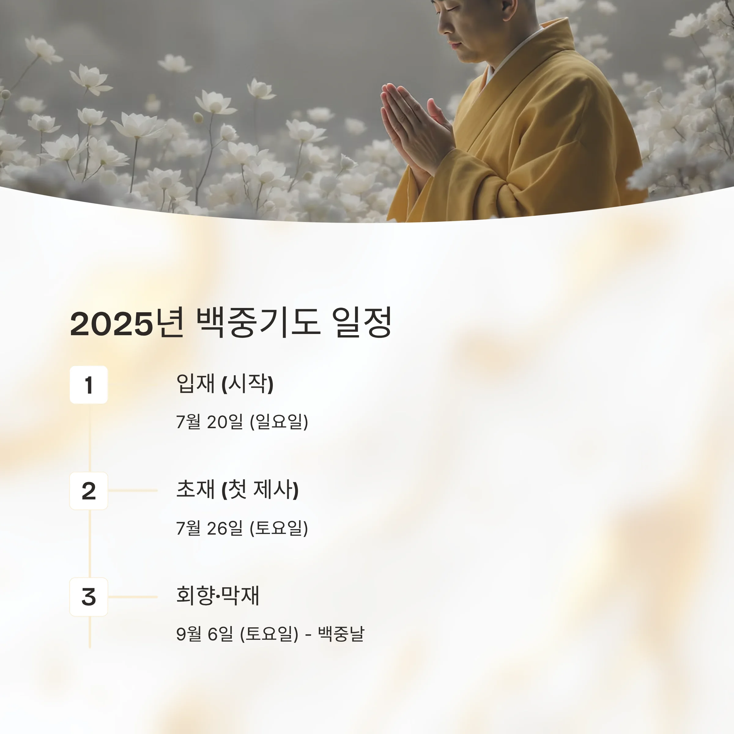 - 2025년 백중기도 입재(시작): 7월 20일(일)