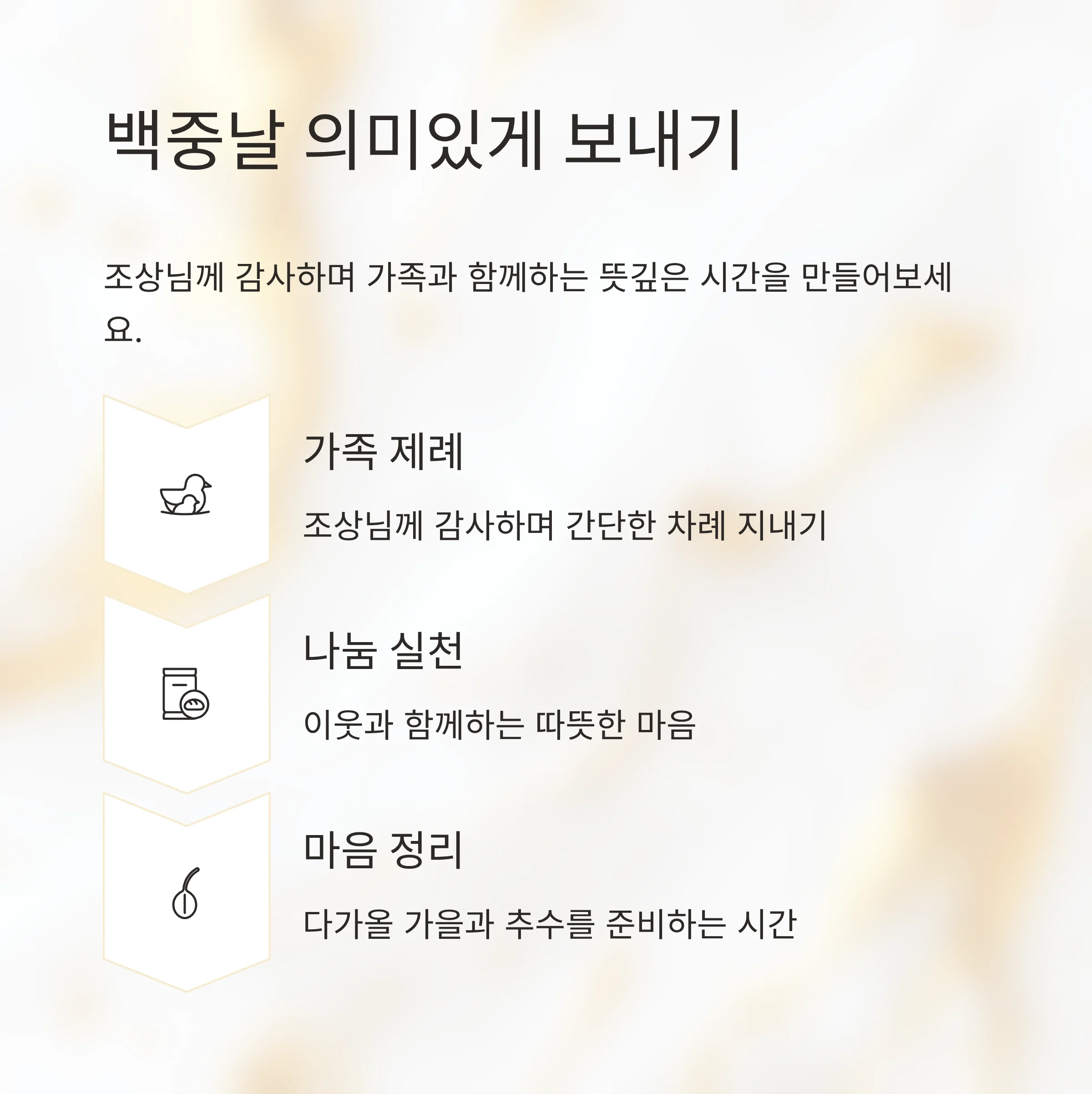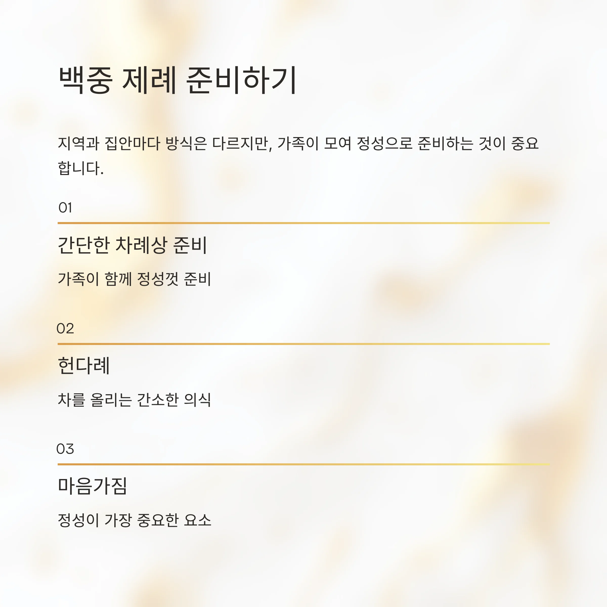 - 조상님께 감사하며 가족과 간단한 제례·차례를 지내기