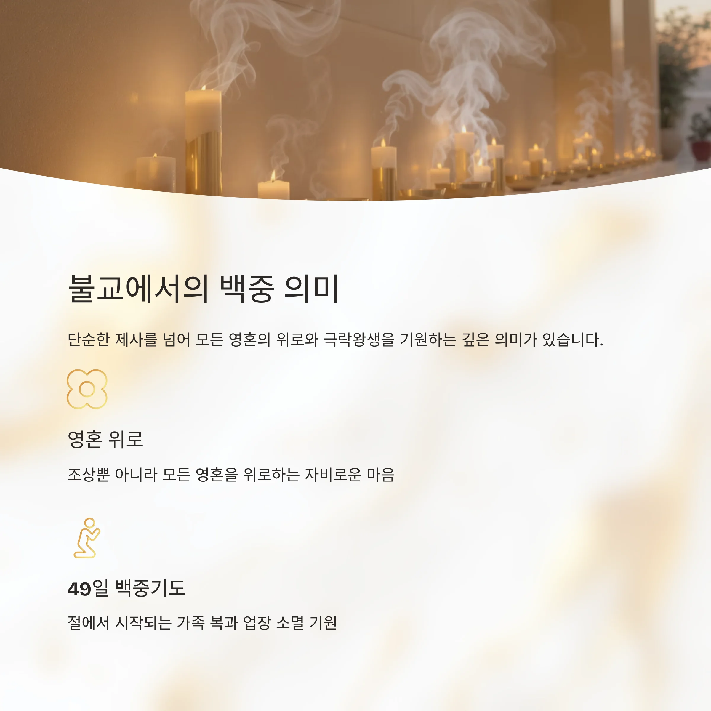 단순한 제사·명절을 넘어 조상 뿐 아니라 모든 영혼을 위로하고 극락왕생을 기원하는 의미가 있습니다.
