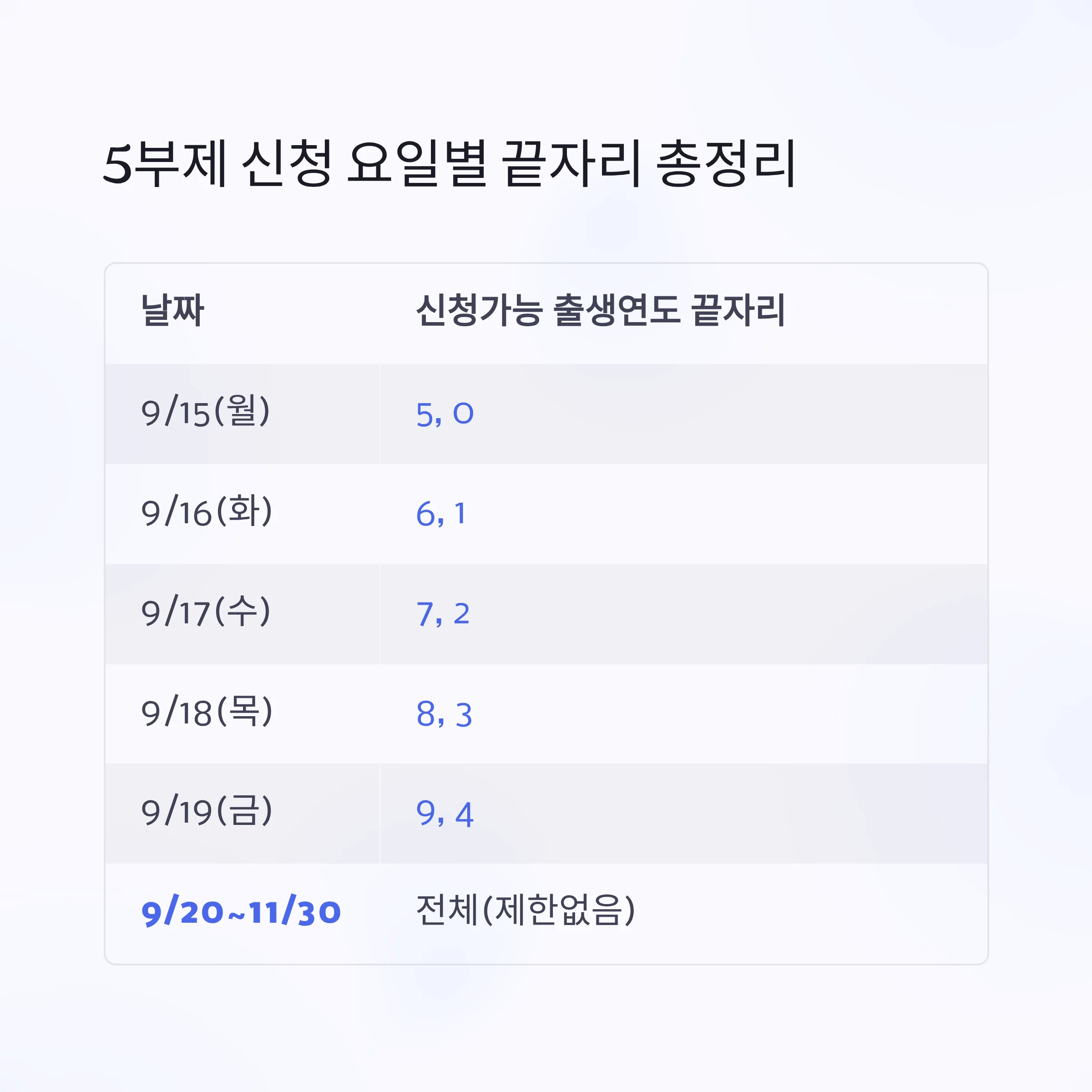 - 9월 20일부터는 끝자리 상관없이 누구나 신청 가능