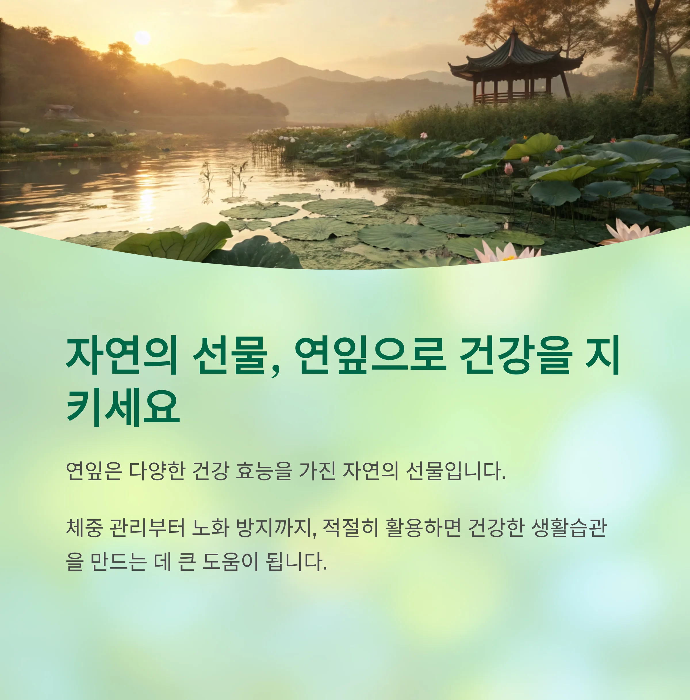 연잎은 예로부터 다양한 전통 요법에 활용되어 온 재료로, 최근에는 건강을 위한 자연 식품으로 각광받고 있습니다.