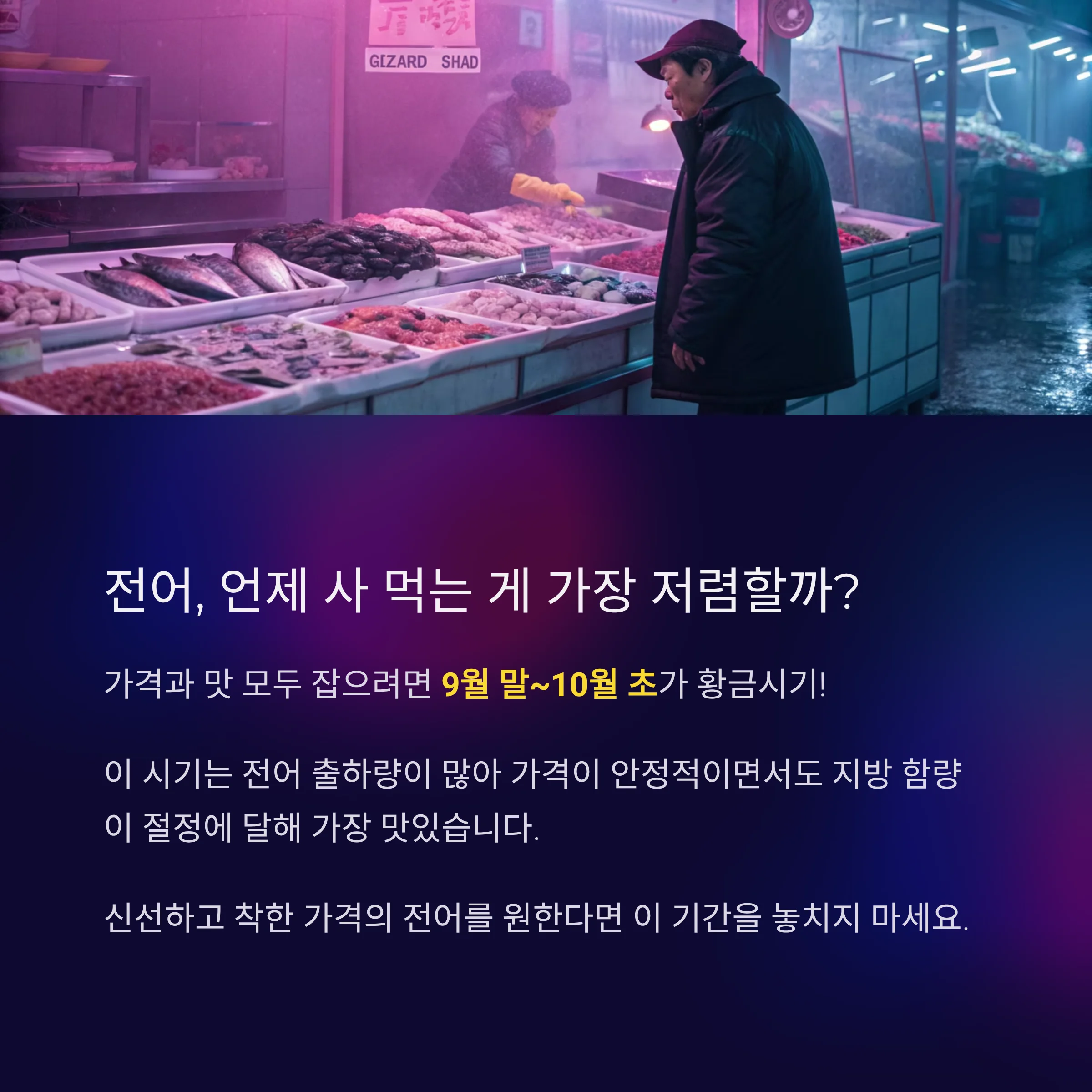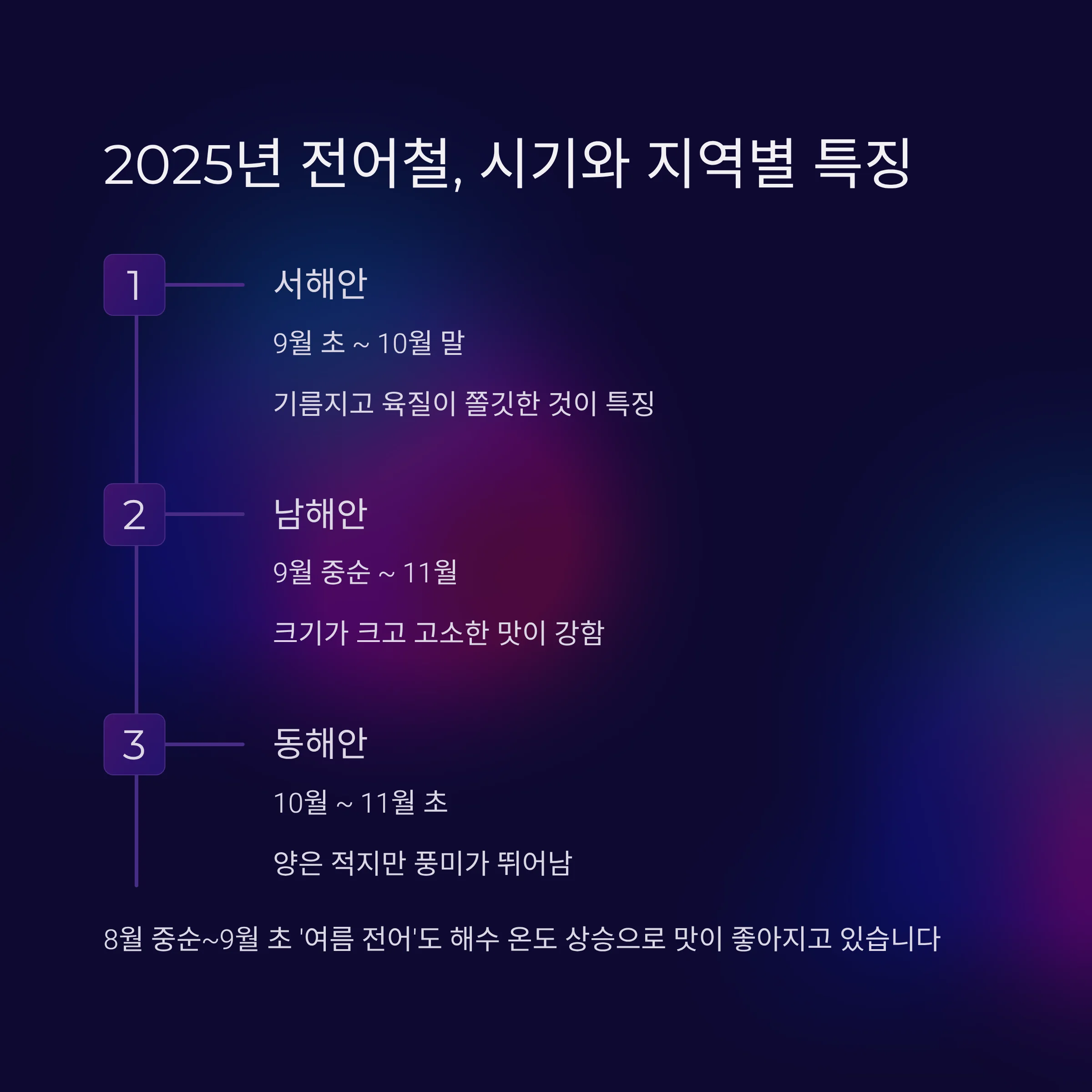 2025년에도 전어철은 예년과 마찬가지로 9월부터 11월까지 이어지며, 이 시기에는 살이 오동통하게 올라 고소한 맛이 절정을 이룹니다.