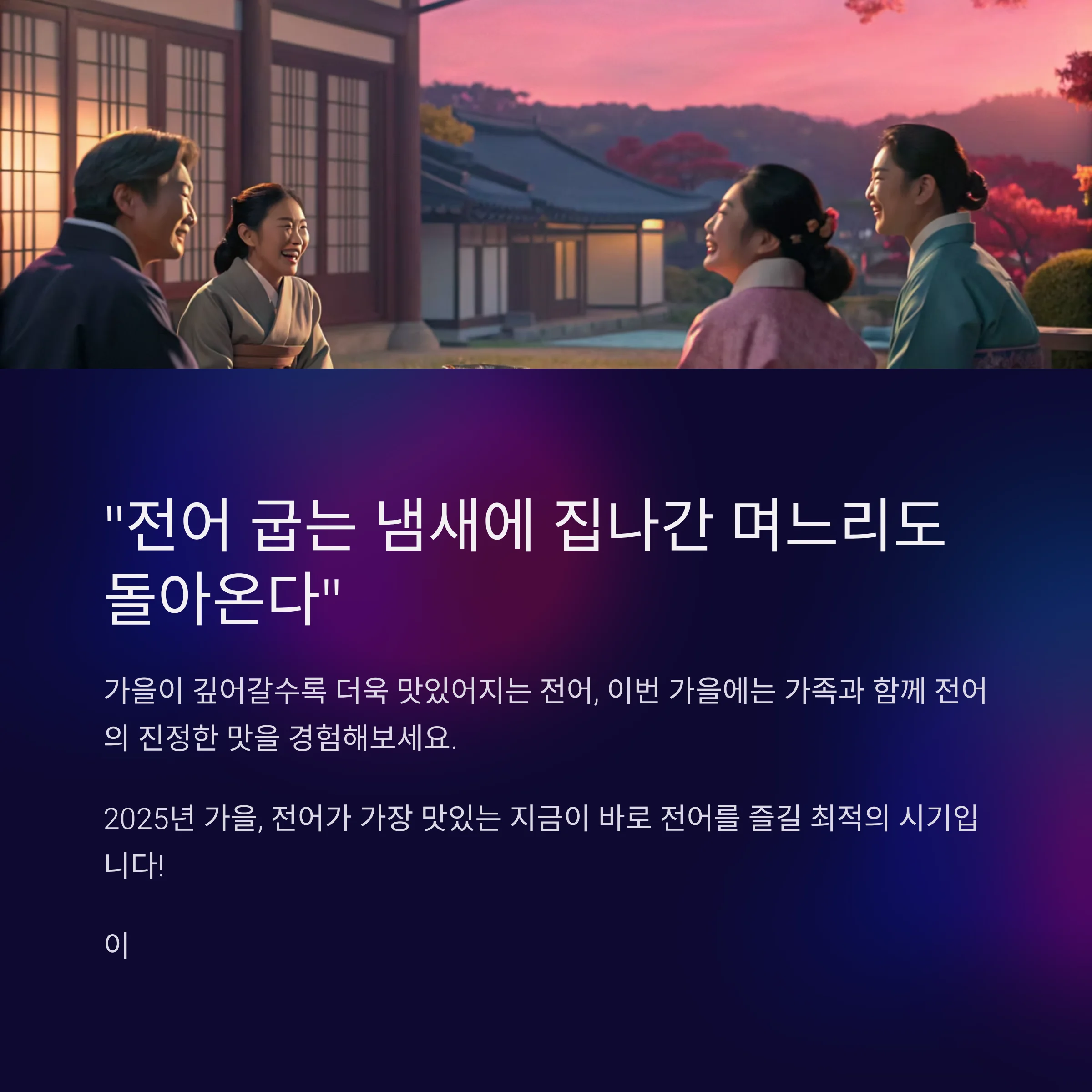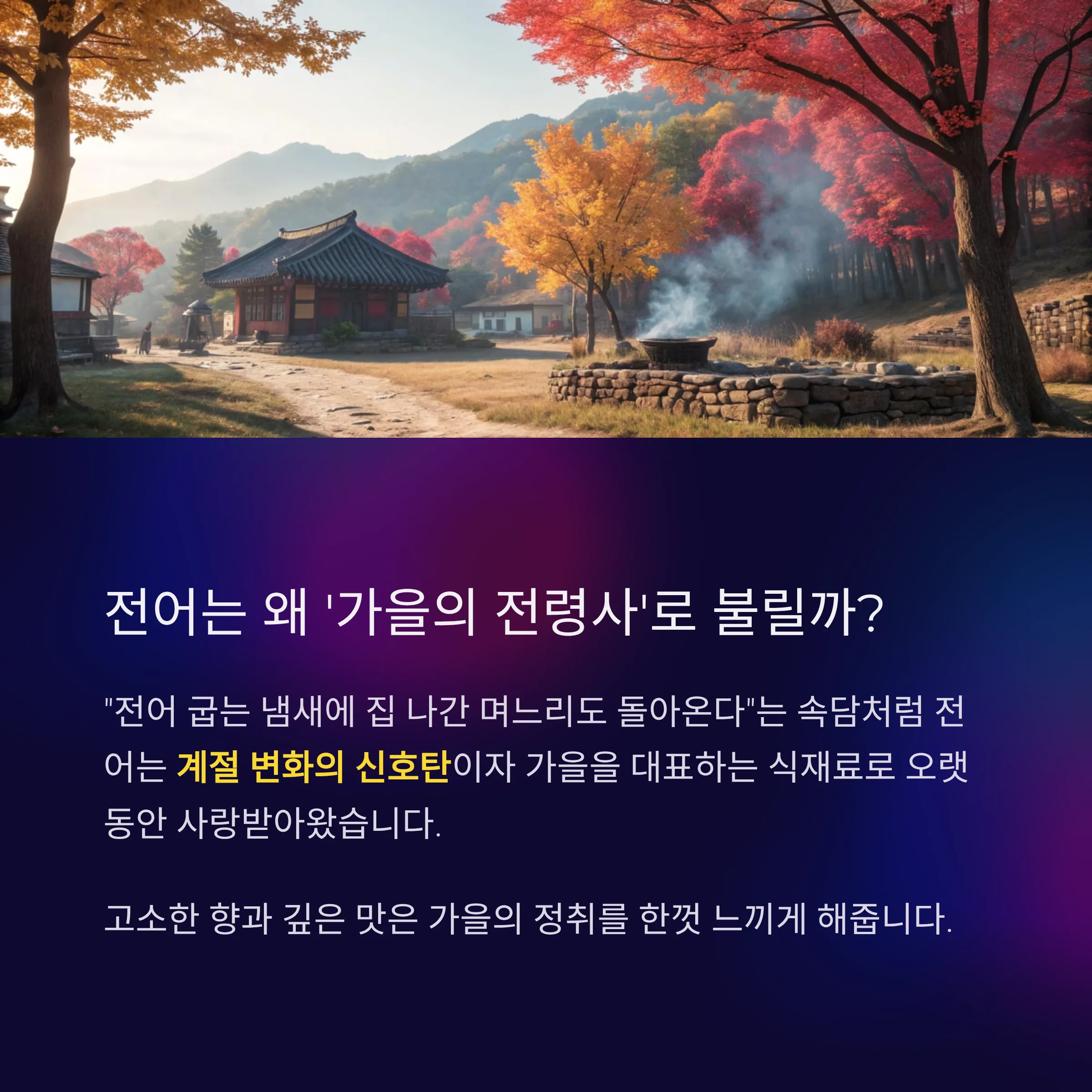 "전어 굽는 냄새에 집 나간 며느리도 돌아온다"는 말처럼, 고소한 향과 계절의 감성을 동시에 자극하는 음식입니다.