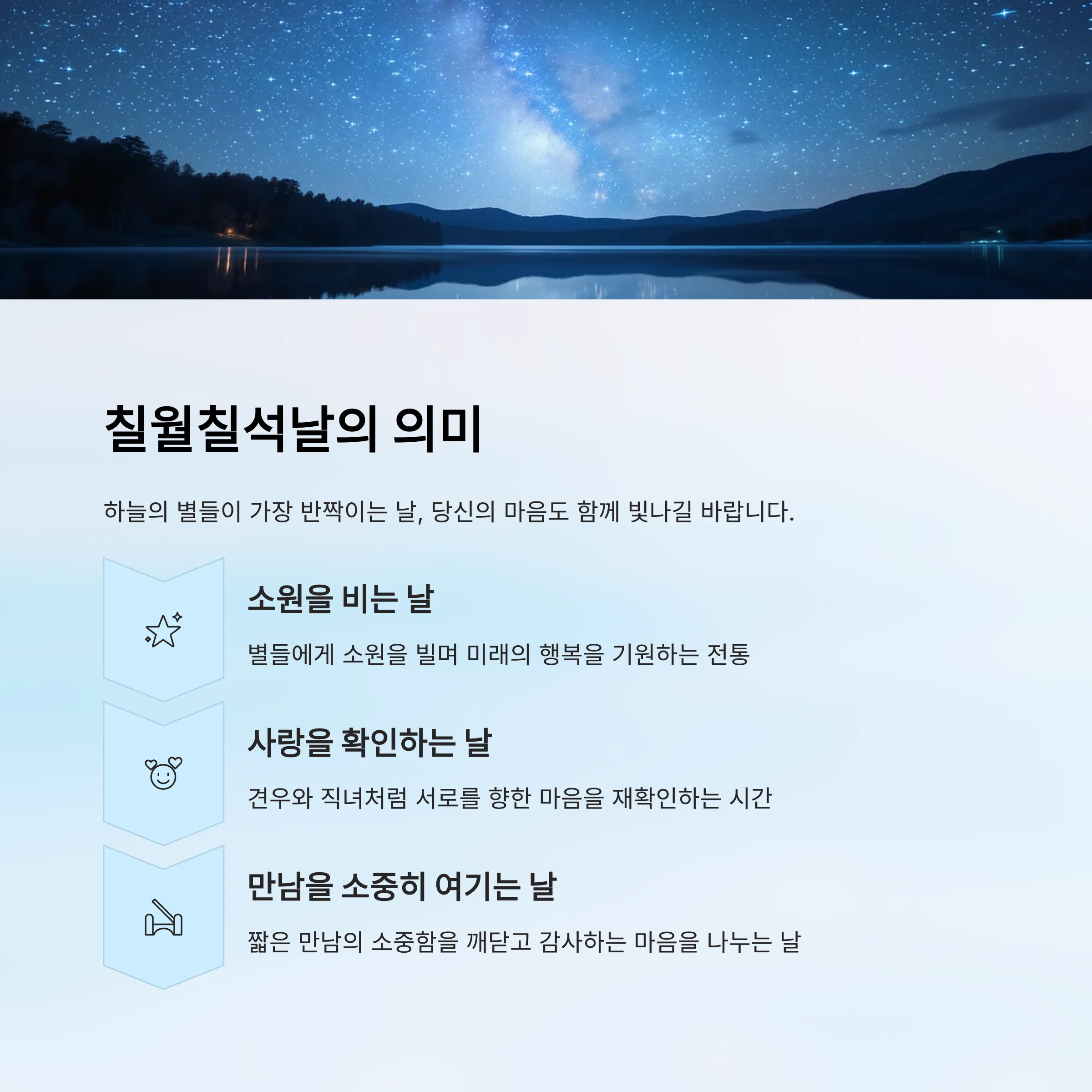 이 글에서는 칠월칠석을 기념하며 사랑과 소망을 전하는 인사말 이미지의 의미와 활용법을 함께 나눠보겠습니다.