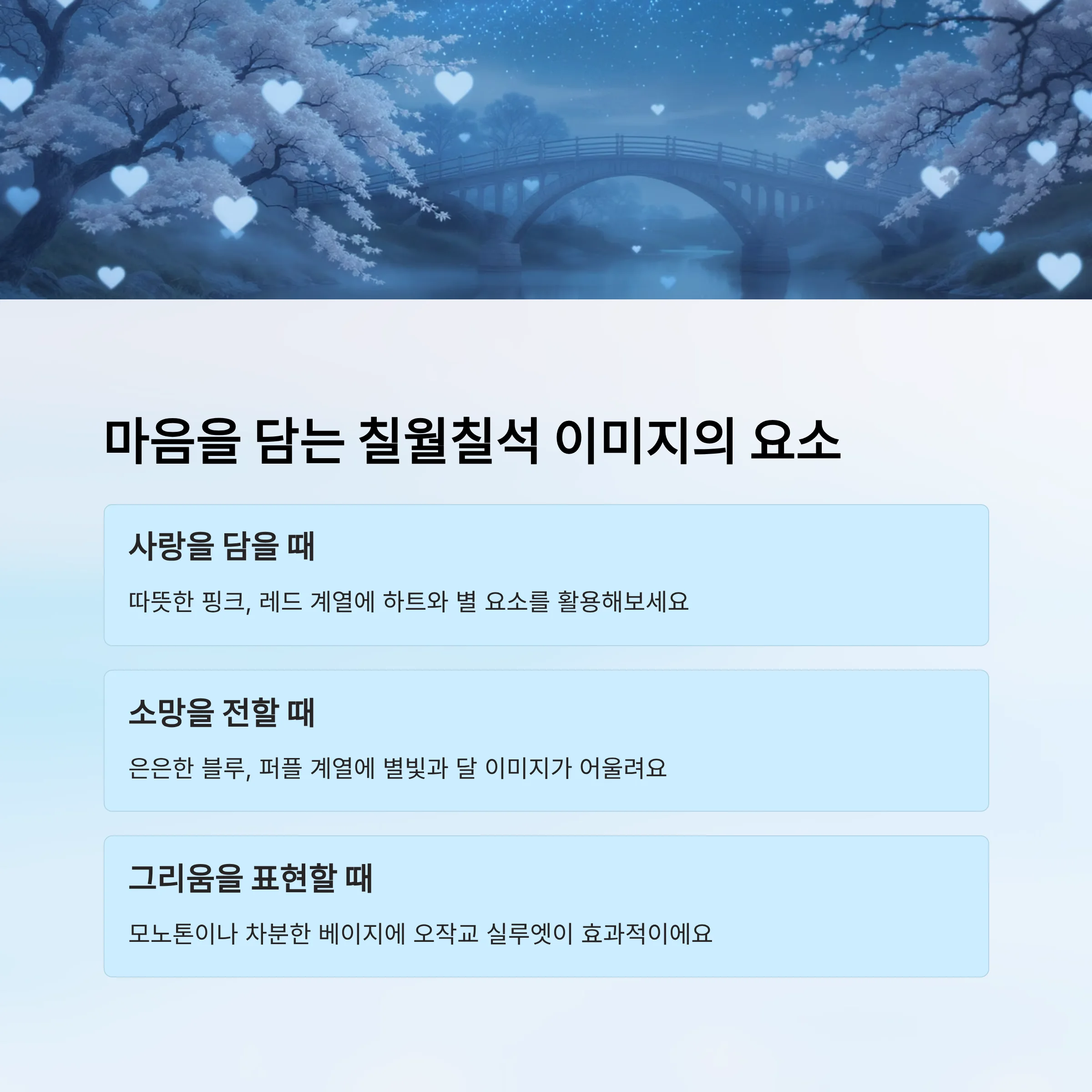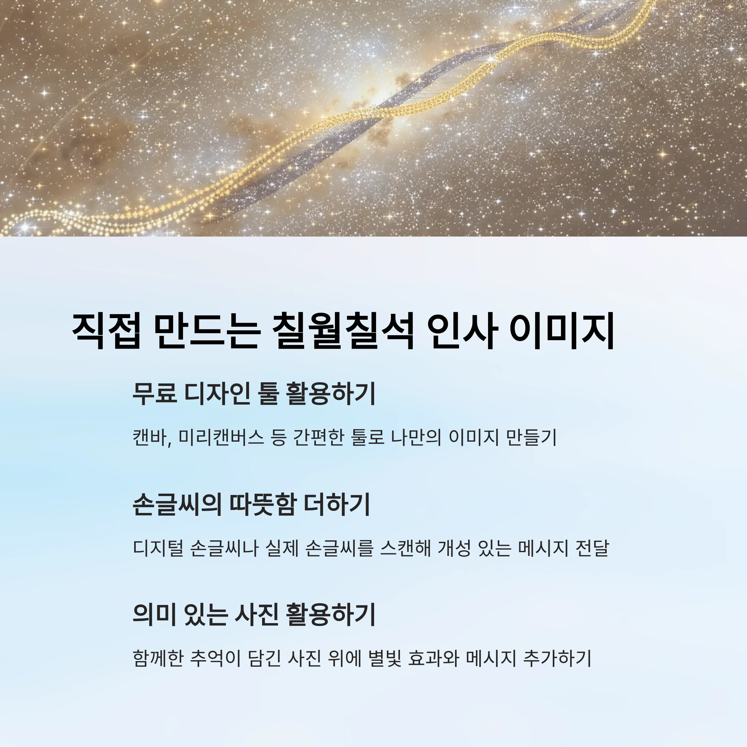 요즘은 무료 디자인 툴을 활용해 직접 칠월칠석 이미지를 제작하는 분들도 많아요.