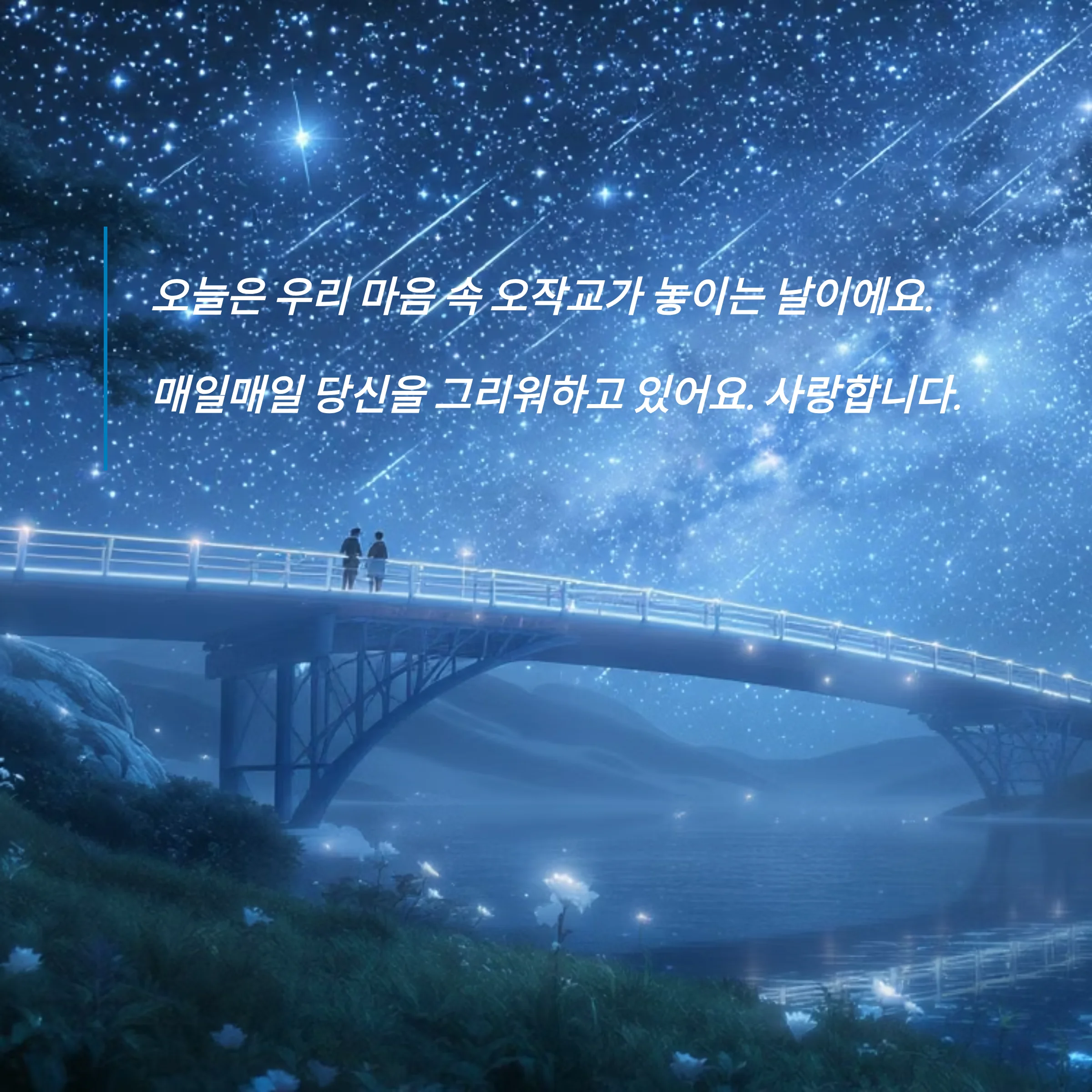 칠월칠석은 음력 7월 7일, 하늘의 별이 된 견우와 직녀가 오작교 위에서 만난다는 전설에서 유래했어요.