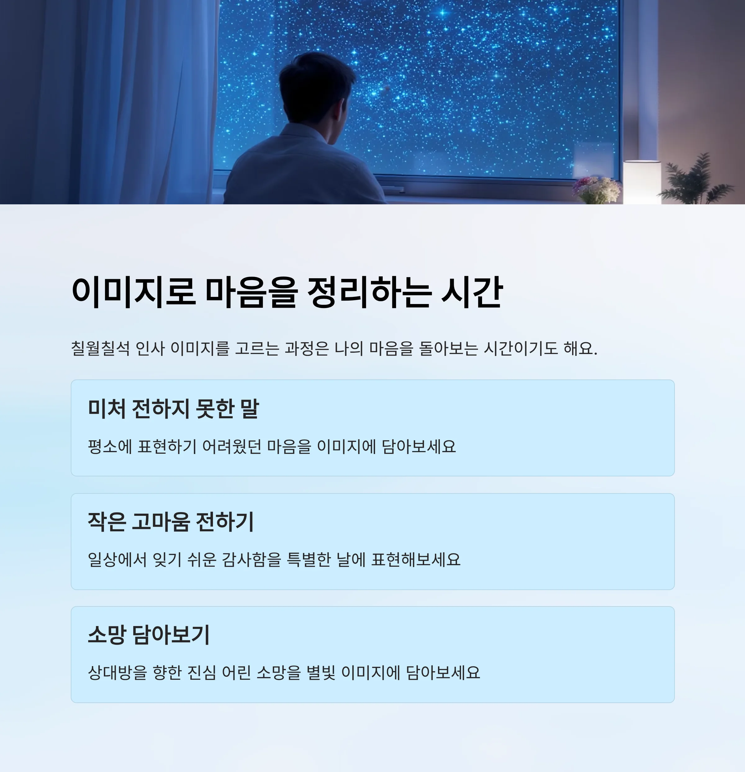 단순한 텍스트 메시지보다 감성적인 이미지 한 장이 더 깊은 울림을 줄 수 있어요.