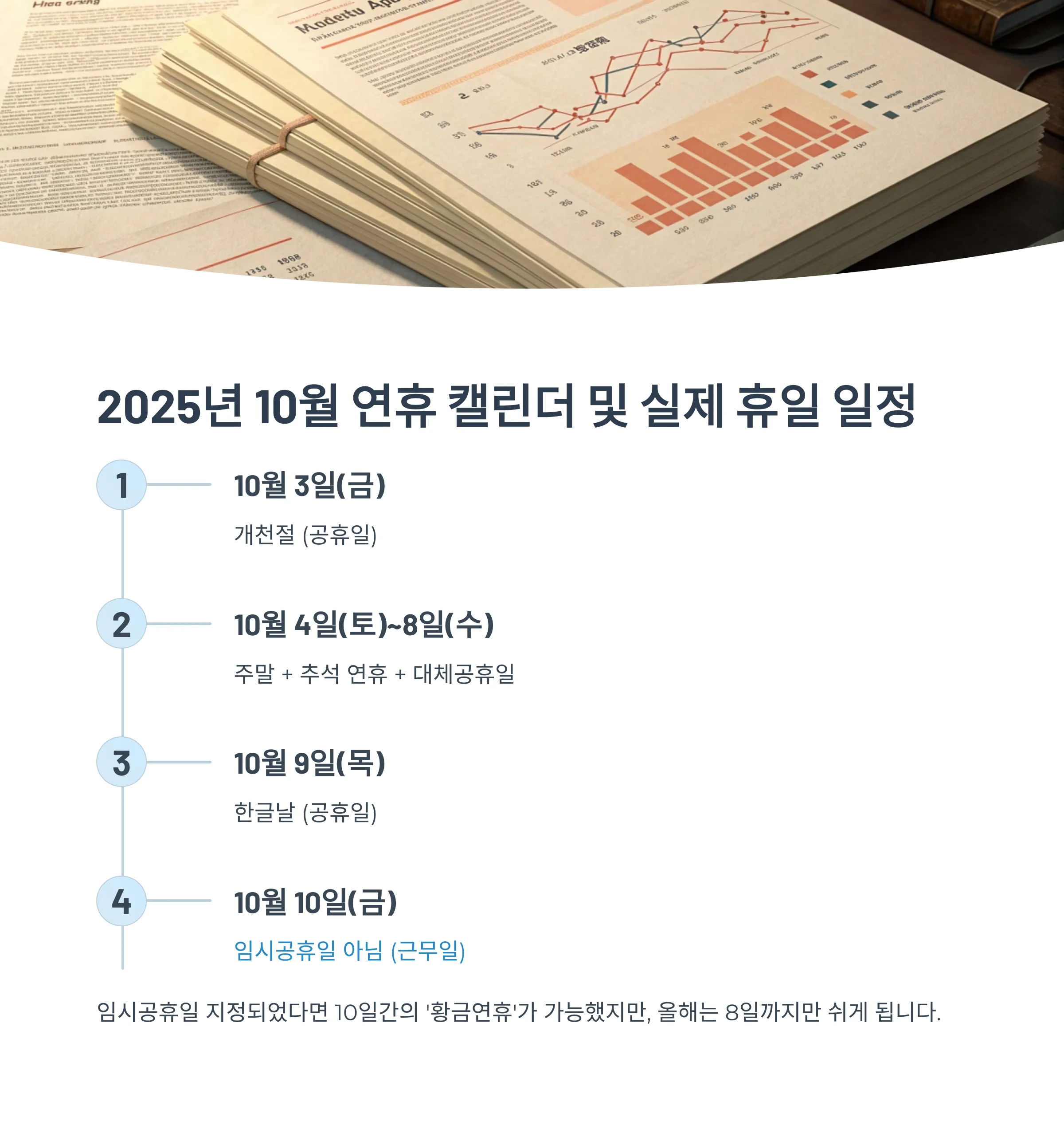 2025년 10월 연휴 캘린더 및 실제 휴일 일정